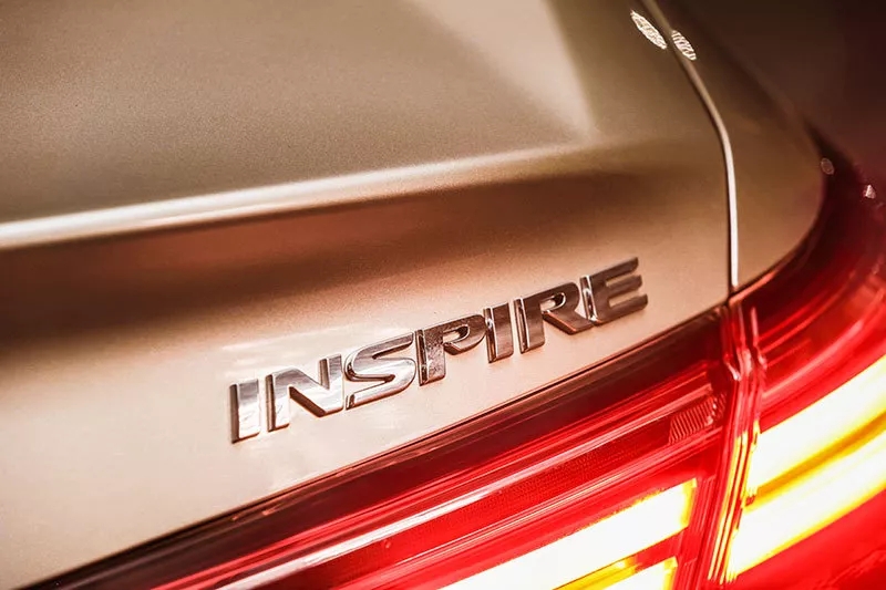 當(dāng)然漂亮的前臉還離不開(kāi)大燈的畫龍點(diǎn)睛,由6近光+3遠(yuǎn)光共計(jì)9顆LED燈珠組成的全LED燈組像陣列般排開(kāi),無(wú)論是白天還是夜晚都讓INSPIRE更加顯目。如果你按下雙閃或者撥動(dòng)轉(zhuǎn)向燈桿,就會(huì)發(fā)現(xiàn)INSPIRE采用了流動(dòng)式轉(zhuǎn)向燈設(shè)計(jì),隨著燈帶的流動(dòng)科技感也隨之上升。來(lái)到尾部,紅色的尾燈組讓INSPIRE顯得動(dòng)感十足,翹起的小尾翼以及雙邊共雙出的排氣也都為運(yùn)動(dòng)風(fēng)格的營(yíng)造做出了貢獻(xiàn)。總的來(lái)說(shuō),INSPIRE的外觀極具魅力,時(shí)尚而不張揚(yáng),在細(xì)節(jié)處又營(yíng)造了恰到好處的運(yùn)動(dòng)風(fēng)格。尤其我們的試駕車還采用了金色車漆,更是平添了旗艦質(zhì)感。