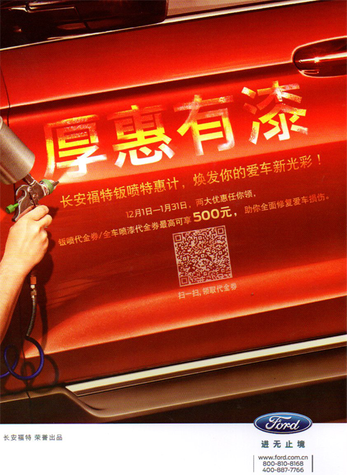 2、全車噴漆代金券:500元(全車噴漆業(yè)務消費總額高于4000元)。