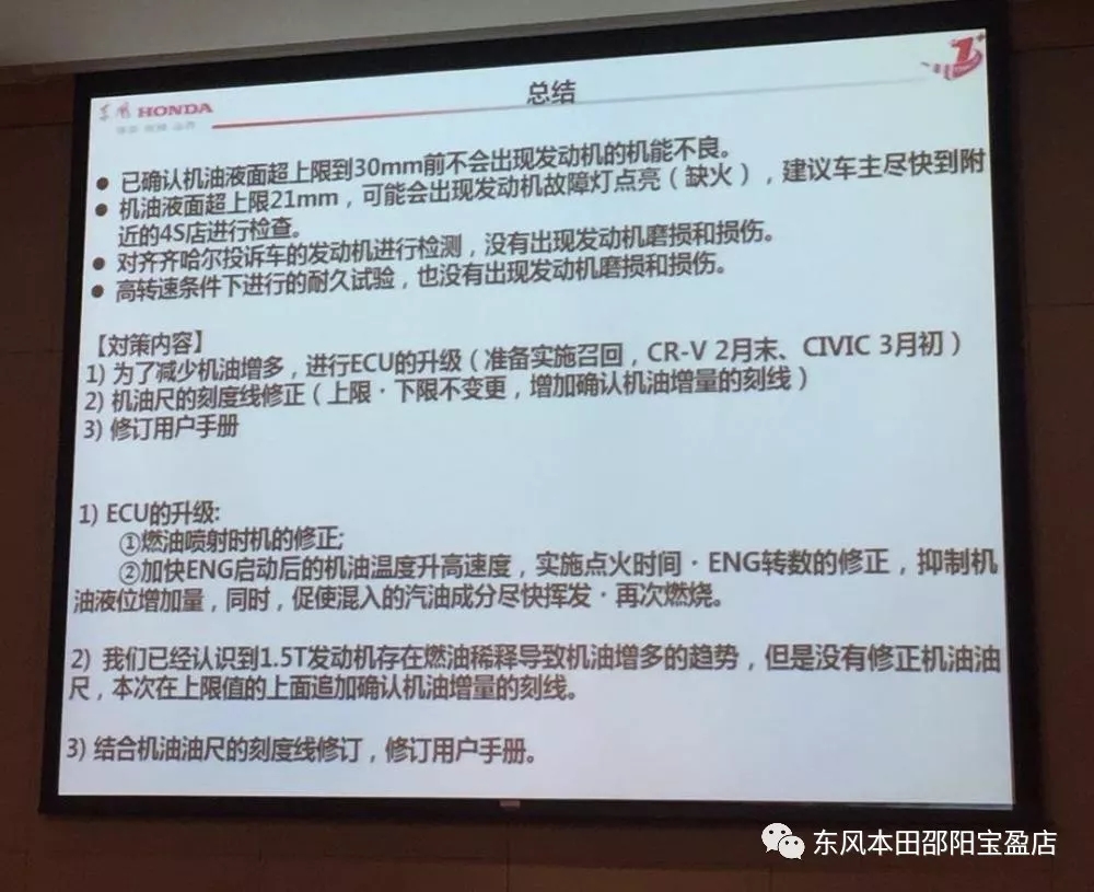 東風本田稱,對全車型投訴的機油增加量進行了調(diào)查,結(jié)果顯示,機油液位超上限20mm以下的占95%,尚未收到因機油增加導致的發(fā)動機損壞的投訴。