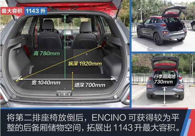 ENCINO和本家兄弟ix25對比來看,ix25還要大一圈,但是ix25側(cè)重的是家用而非追求性能,因此車身尺寸沒ENCINO那么緊致。