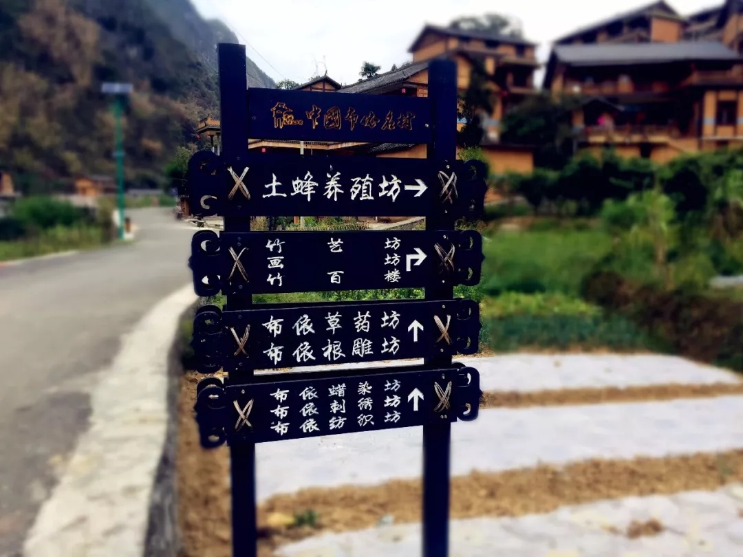走進(jìn)村莊,路牌上的標(biāo)注讓我們以最快速度了解了這里的傳統(tǒng)文化特色。