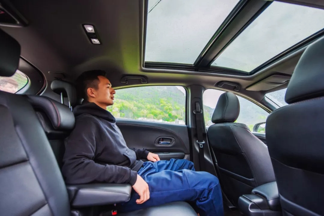 坐在后排,我仔細(xì)觀察起XR-V的全景天窗,它面積大,采光效果好,如果是白天的話坐在車?yán)镉幸环N通透、不受束縛的感覺。坐在駕駛室的海龍見我觀察天窗,還不忘提醒我,天窗及遮陽板都可以電動一鍵開閉,邊說還邊鄭重其事地演示了一遍,逗得我們直樂。