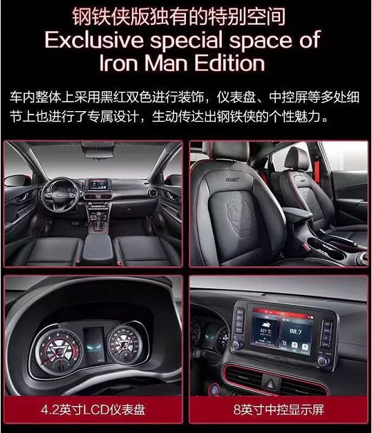 在產(chǎn)品設(shè)計(jì)上,昂希諾 鋼鐵俠版的車身采用雙色調(diào)設(shè)計(jì),配有鋼鐵俠專屬以太紅和鈦金灰飾面,多處細(xì)節(jié)加入IRONMAN及MARVEL字樣,重新設(shè)計(jì)的車身前部酷似面具,獨(dú)特的日間行車燈形似鋼鐵俠犀利的雙眼。車內(nèi)采用紅黑雙色裝飾,液晶儀表盤中融入鋼鐵俠頭盔啟動(dòng)效果,生動(dòng)傳達(dá)出鋼鐵俠的個(gè)性魅力。