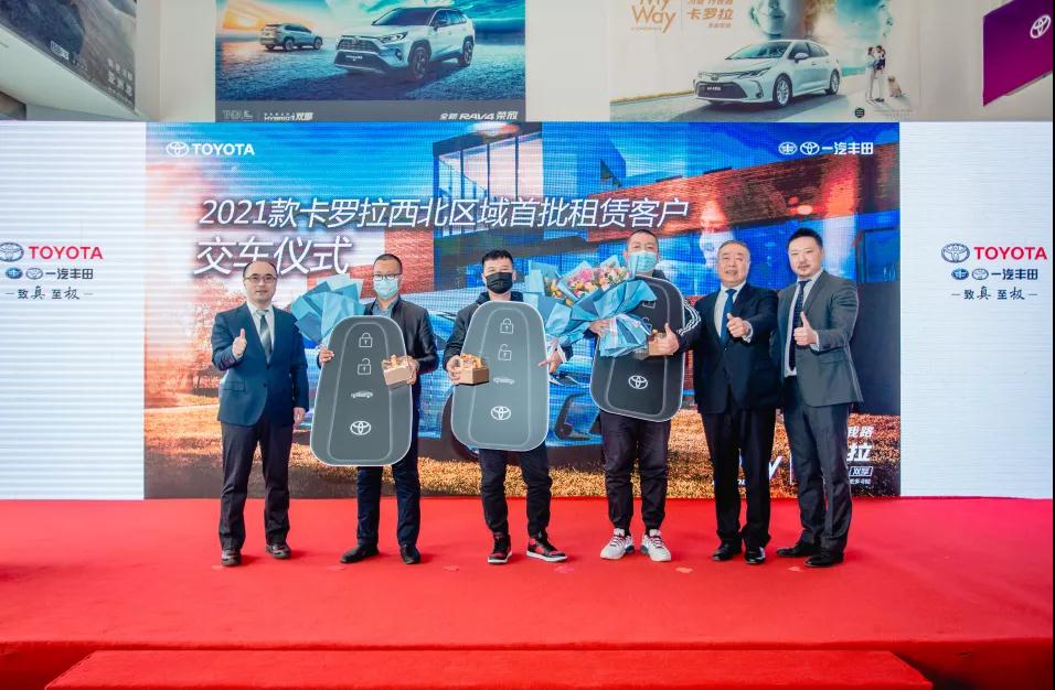 2021年3月12日,一汽豐田2021款卡羅拉交車儀式在烏魯木齊華通豐田4S店隆重舉行。本次交車儀式上,一汽豐田向烏魯木齊悟空行汽車服務(wù)有限公司、新疆悅馳汽車服務(wù)有限公司、西部暢行貿(mào)易有限公司一次性交付30臺2021款卡羅拉,該批次車輛將用于三家企業(yè)開展當?shù)仄囎赓U、旅游、運營業(yè)務(wù)。