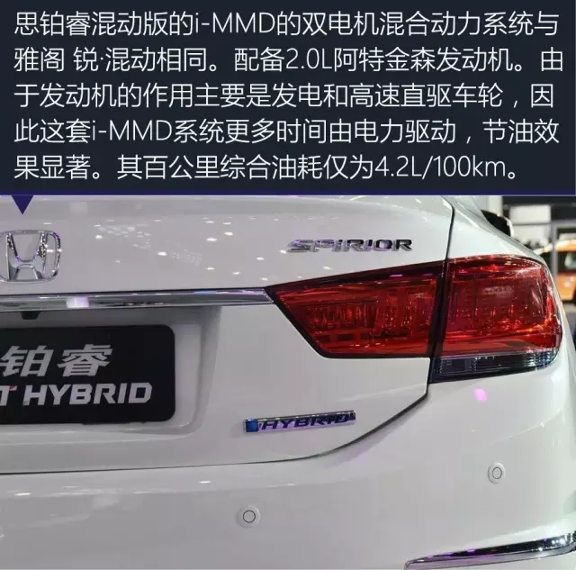在2016廣州車展上,東風(fēng)本田為我們帶來(lái)了一款新思鉑睿銳·混動(dòng)車型,這是本田在中國(guó)投放的第二款國(guó)產(chǎn)混動(dòng)車。其動(dòng)力系統(tǒng)搭載了本田獨(dú)創(chuàng)的i-MMD雙電機(jī)混合動(dòng)力系統(tǒng)。然而相比并不意外的動(dòng)力選擇,其低調(diào)的外觀著實(shí)有些出乎意料。因?yàn)槿嚿舷聝H出現(xiàn)了幾處“Hybrid”字樣與汽油版思鉑睿不同,其余均完全一致。這么低調(diào)的混動(dòng)車,我還是第一次見(jiàn)。不信?往下你自己來(lái)找茬吧。