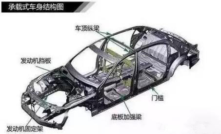 承載式車(chē)身多用于轎車(chē)或城市SUV,車(chē)身沒(méi)有獨(dú)立車(chē)架,車(chē)身結(jié)構(gòu)件和底盤(pán)一體成型,然后添加上車(chē)身覆蓋件(發(fā)動(dòng)機(jī)艙蓋、車(chē)門(mén)、車(chē)頂?shù)龋?。承載式車(chē)身在鋼性上較弱,車(chē)輛的承載能力也是相當(dāng)有限的。