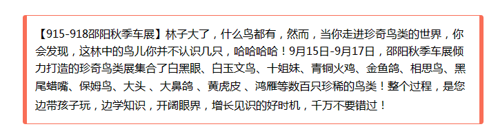 那就去邵陽(yáng)秋季車展看鳥吧!