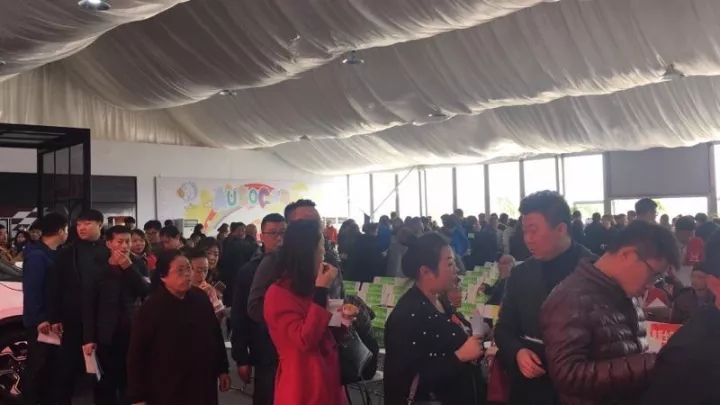 現(xiàn)場(chǎng)參與活動(dòng)的車友們有序排隊(duì)等待報(bào)名