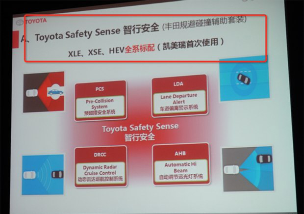 配置方面,根據(jù)早前獲得的車(chē)型信息介紹圖片,新車(chē)將全系標(biāo)配電子駐車(chē)系統(tǒng)、自動(dòng)駐車(chē)、全車(chē)10個(gè)SRS氣囊(主/副駕駛席氣囊、前排側(cè)氣囊、前排膝部氣囊、側(cè)氣簾、后排側(cè)氣囊)。此外,在XLE、XSE兩款車(chē)型中將標(biāo)配10英寸彩色抬頭顯示屏、7英寸TFT MID行車(chē)電腦等配置。同時(shí),在HEV車(chē)型中將配備自動(dòng)化性控制系統(tǒng)(AGC:Auto Glide Control)以及采用了全新開(kāi)發(fā)的Hyper Prime Nicke電池等。值得一提的是,未來(lái)根據(jù)車(chē)型配置的不同還將配備全景監(jiān)控系統(tǒng)(PVM)和并線盲點(diǎn)監(jiān)測(cè)系統(tǒng)(BSM)配置。