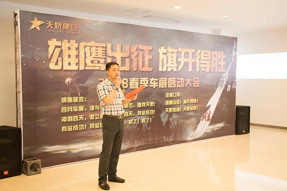 2018邵陽(yáng)春季車展即將拉開帷幕,為了打好2018年車展第一仗,激發(fā)員工的斗志,4月12日,集團(tuán)旗下6大品牌、8家汽車4S店全體營(yíng)銷管理團(tuán)隊(duì),在集團(tuán)謝總的帶領(lǐng)下,在會(huì)議室舉行了盛大的車展啟動(dòng)儀式。