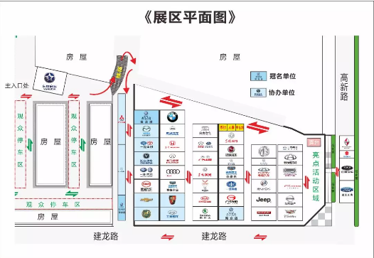 主入口處有車展專用觀光車接送到展區(qū),??空军c依次為主入口——龍騰上汽大眾——直升機(亮點活動區(qū)域)。