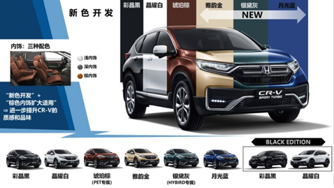 配色方面,新款本田CR-V除了新增了雅韻金、銀黛灰(混動(dòng)車(chē)型專(zhuān)屬)、月光藍(lán)三種外觀配色之外,還有個(gè)性十足的Black Edition車(chē)型(包括彩晶黑、晶耀白兩種配色)可供選擇,該車(chē)型有專(zhuān)屬標(biāo)識(shí)。