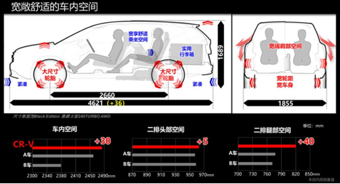 此外,新車(chē)的車(chē)身尺寸相比以往也有所提升,新款本田CR-V兩驅(qū)版車(chē)型的長(zhǎng)寬高分別為4621/1855/1679mm,軸距為2661mm,四驅(qū)版車(chē)型的長(zhǎng)寬高分別為4621/1855/1689mm,軸距為2660mm。