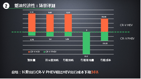 純粹作為上下班通勤用,且一周只充一次電。這對于家里或單位沒有固定充電樁的車主來說,應(yīng)該是最常見的情況了。測試的結(jié)果是,CR-V銳·混動e+比CR-V銳·混動成本降低22%。