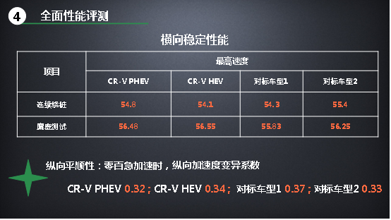 關(guān)于這一點我們的解讀是,相對于打雞血式的急加速,Honda對于CR-V銳·混動e+的穩(wěn)定性和舒適性更為看中。這其中,剎車距離、麋鹿測試成績都是與主動安全性密切相關(guān)的,它體現(xiàn)出車輛避免事故發(fā)生的能力。而縱向平順性和降噪性能等,則均與駕乘舒適性有關(guān)。