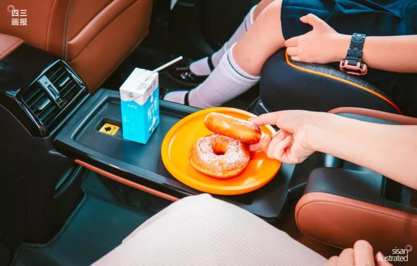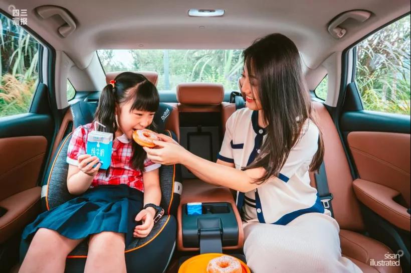 “早上一般都是他做飯,我去收拾寶寶起床、洗漱,完事再一起吃早餐,偶爾要是起晚了就只能在車上解決了。好在享域后排配了一個小桌板,能臨時當個小飯桌,讓我喂茜茜吃飯?!本杲愀吲d的說著。