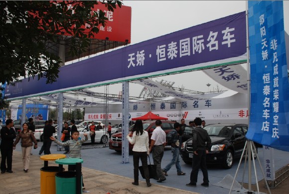 邵陽市第四屆汽車博覽會在市區(qū)兩級政府的大力關(guān)心、支持下,經(jīng)過市區(qū)兩級領(lǐng)導(dǎo)及邵陽市汽車商會全體人員的共同努力,于2011年9月23日—26日在邵陽市魏源國際廣場成功舉辦,作為由邵陽電視臺主辦、邵陽市汽車行業(yè)商會、邵陽市交警協(xié)辦,30余家汽車經(jīng)銷商共同參與的一次盛大的博覽會,這其中天嬌集團得到了B2、B5、C7、D6、E6、E7、E8、G11、G12、G13展位。得益于邵陽市的各大報紙、電視臺和電臺的循環(huán)播報展會的相關(guān)信息,使得車展信息準(zhǔn)確、快速的傳遞給客戶,市內(nèi)、市外的其他縣市的居民也踴躍前來看車購車,摩肩接踵形容這次車展一點也不為過。