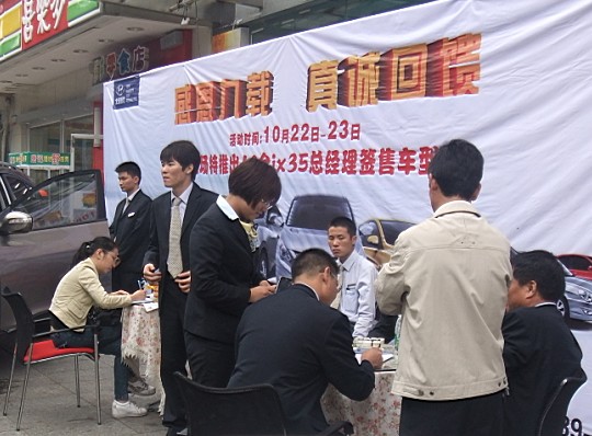 另外,總經(jīng)理現(xiàn)場全天候的監(jiān)督簽售活動(dòng)車型IX35,