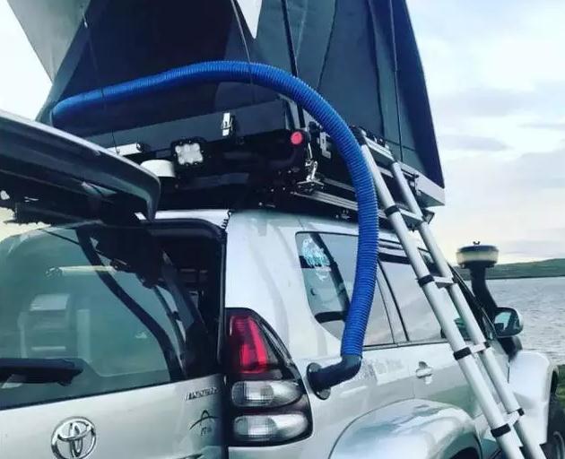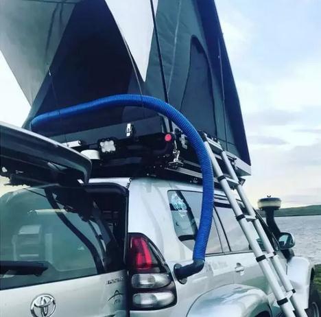 尾部相對(duì)前面就只加了一個(gè)拖車鉤,不過(guò)車頂卻是大做文章。除了加裝行李架之外,連帳篷也搬到了車頂,這樣子可以隨時(shí)在戶外過(guò)夜了!另外有車友知道那根藍(lán)色的管子是什么作用的嗎?