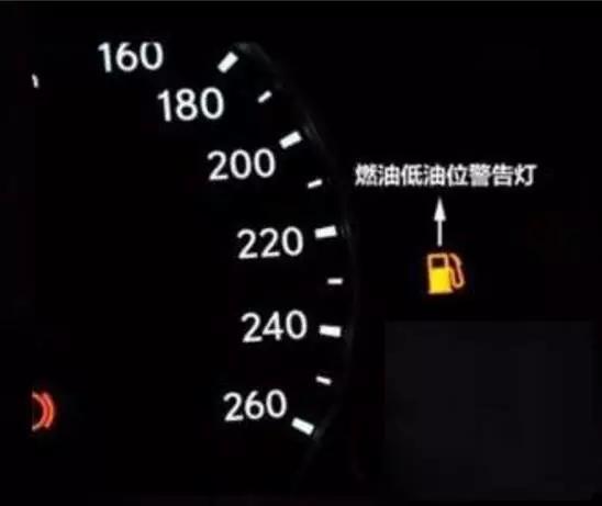 當(dāng)燃油油量剩余約9.8升或更少時,燈就會亮起,提醒燃油油量過低,該及時加油。