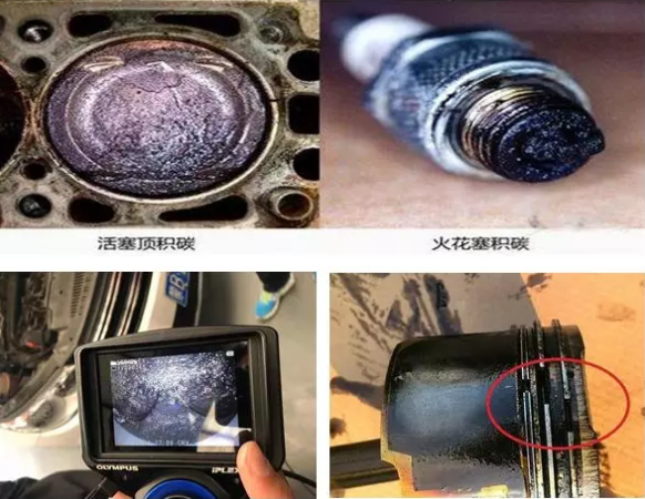當(dāng)燃油中的膠質(zhì)粘附在節(jié)氣門、油路管路、火花塞等部件中,經(jīng)過(guò)發(fā)動(dòng)機(jī)反復(fù)高溫的作用下,不斷累積在噴油嘴、氣門、活塞、進(jìn)氣道等部位就形成了硬質(zhì)積碳。