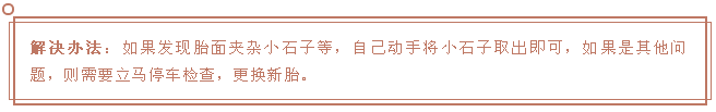 輪胎造成的異響一般多為胎噪,如出現(xiàn)“嗒嗒”聲,可能是胎面夾雜了小石子或扎釘?shù)取H绻堑统恋摹芭九尽甭?,那多半是輪胎胎面變形、起包、磨損嚴(yán)重或氣壓不足;如果輪胎呼呼呼響,且車身明顯抖動甚至方向跑偏,一定是車輛爆胎。