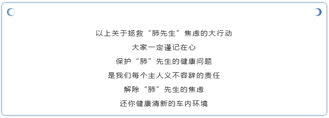 行駛中不可避免的開窗,車外的汽車尾氣、PM2.5和其他懸浮微粒隨著吹進來的風可能也會潛入你的車內,對“肺”先生產生影響