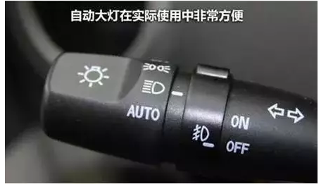 如果在左邊的燈光控制桿上有“AUTO”字樣,說明你的愛車配有自動大燈功能。自動大燈是在前擋風(fēng)玻璃內(nèi)側(cè)的感應(yīng)器,可以感應(yīng)環(huán)境光線變化情況;如果光線變暗,則可以自動開啟前大燈,提高行車安全。即使你晚上停車忘記關(guān)掉自動大燈,拔掉車鑰匙也會自動關(guān)閉該功能,完全可避免大燈未關(guān)閉造成電瓶虧電情況