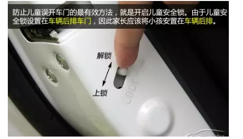對于有孩子的司機(jī)來說,最怕就是孩子在車內(nèi)出現(xiàn)危險。可能很多家長不知道,汽車后排是配有兒童安全鎖的,鎖上以后車門從內(nèi)是無法打開的,可以有效避免孩子誤開車門的情況發(fā)生。