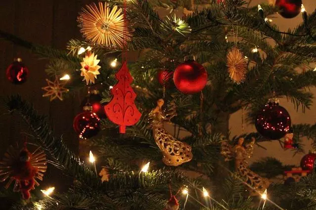 是圣誕節(jié)慶祝中最有名的傳統(tǒng)之一。通常人們?cè)谑フQ前后把一棵常綠植物如松樹弄進(jìn)屋里或者在戶外,并用圣誕燈和彩色的裝飾物裝飾。并把一個(gè)天使或星星放在樹的頂上。